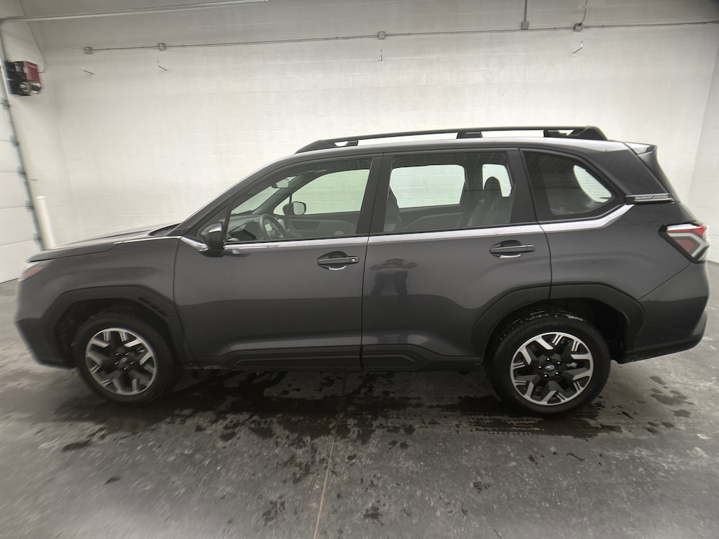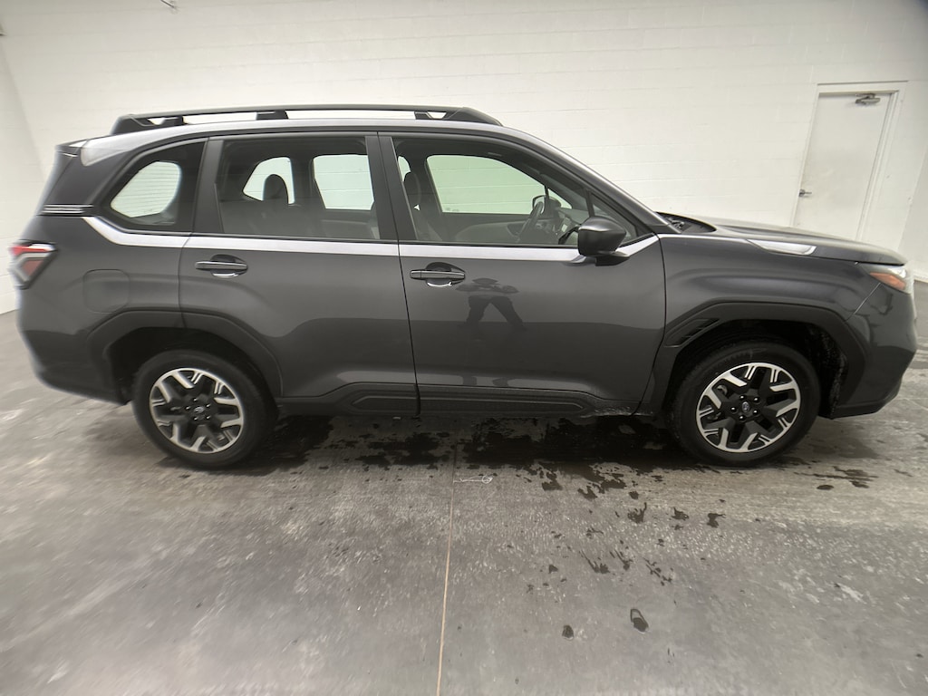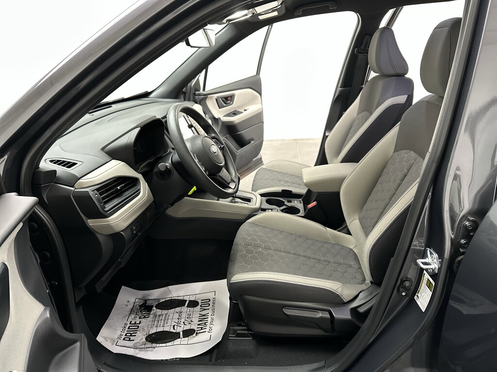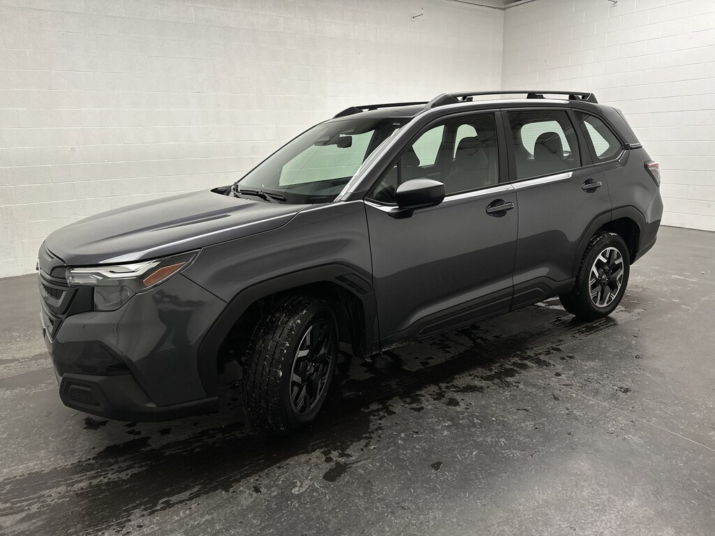 We've just taken in a 2025 Subaru Forester Base SUV - it's finished in Magnetite Gray Metallic, with a Gray hexagonal-patterned cloth interior accented by subtle blue stitching. This Forester currently has just 7,297 miles and is powered by a fuel-efficient 2.5L 4-cylinder gasoline engine paired with a smooth 1-speed CVT and Subaru's legendary Symmetrical All-Wheel Drive. EPA estimates come in at 26 MPG city and 33 MPG highway, making it easy on fuel without sacrificing capability.