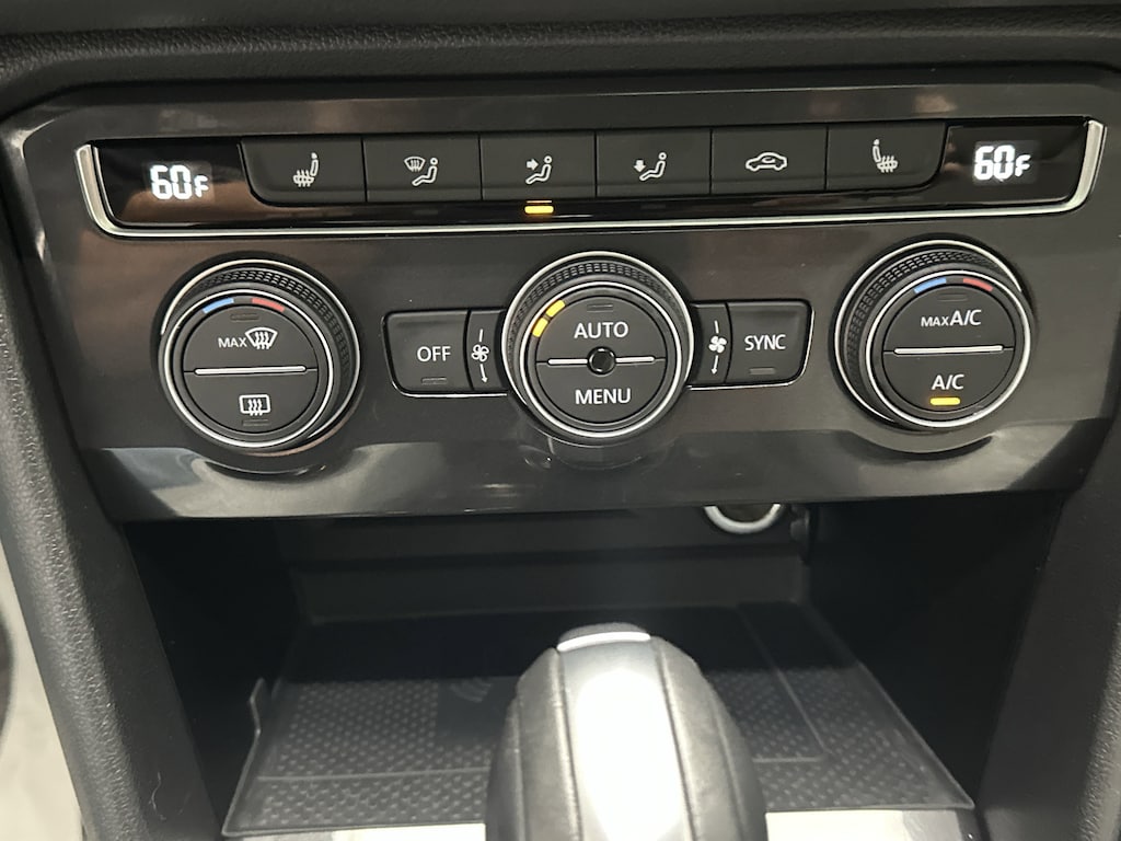 Inside, the Tiguan SE R-Line Black balances sophistication with practicality. The cabinâs Storm Gray Leatherette seating feels upscale and durable, complemented by a sport-style steering wheel and metallic interior trim. Heated front seats keep you cozy during chilly commutes, while the power driverâs seat with lumbar support ensures long-lasting comfort.