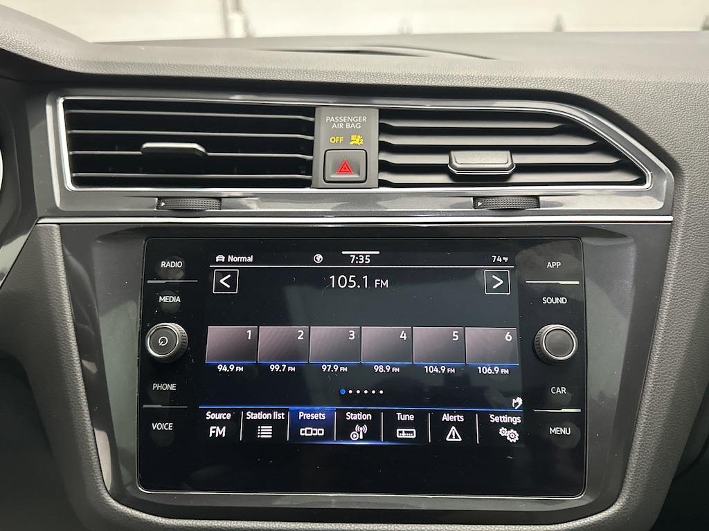 Tech-wise, the Tiguan impresses with Volkswagenâs MIB3 infotainment system and an 8-inch touchscreen that supports wireless Apple CarPlay and Android Auto. Bluetooth, HD Radio, SiriusXM 360L, and a Wi-Fi hotspot make it easy to stay connected. A wireless charging pad keeps your phone powered without messy cords. And when itâs time to park or back out, the rearview camera and parking sensors simplify the process with helpful alerts.