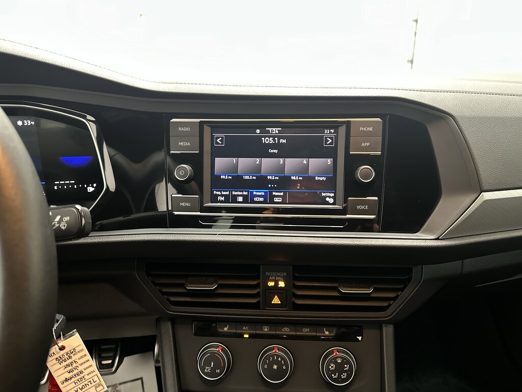 Inside, the Jetta feels modern and comfortable. The leather-wrapped steering wheel and supportive sport seats create a driver-focused cockpit. Heated front seats add comfort on cold mornings, while smart tech like Apple CarPlay, Android Auto, and Bluetooth keep you connected with ease. The 6.5-inch touchscreen infotainment system is intuitive and integrates seamlessly with your smartphone. Plus, the built-in Wi-Fi hotspot and voice controls make every trip more enjoyable and convenient.